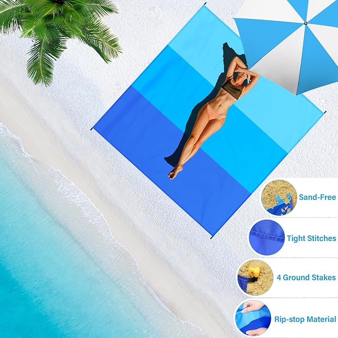 - 🏕️Beach Blanket Oversized:Good tear resistance,dry quickly.Can also be used as a rain shed,sunshade,tent,toddler crawl,emergency mat.Feel comfortable to lying down.Won't irritate your skin,better professional fabric sewing.