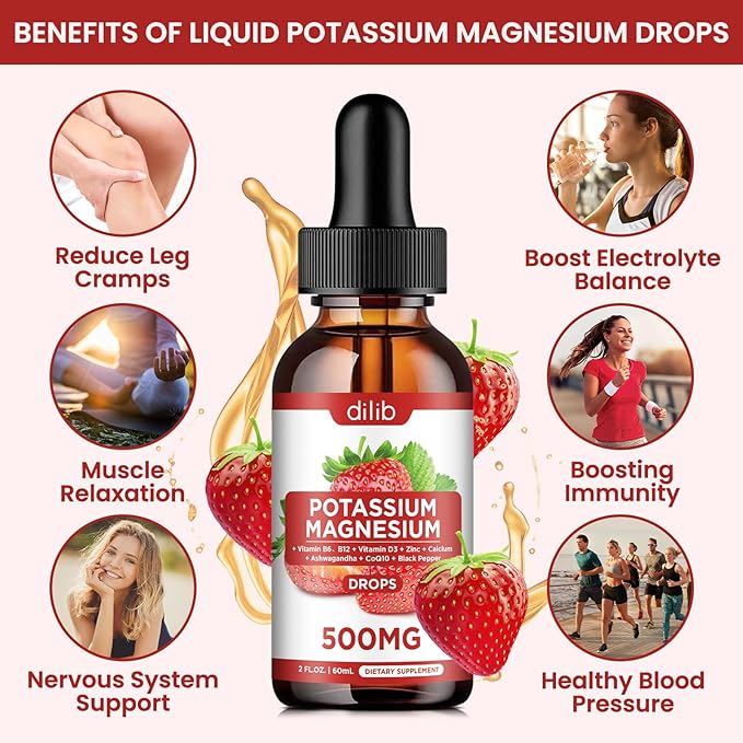 - DELICIOUS TASTE & EASY TO EAT: To guarantee you are receiving a high-quality potassium magnesium supplement, our strawberry flavored potassium supplement is sucrose-free, 100% vegan, non-GMO, and devoid of preservatives, artificial colors, fillers, dairy, yeast, milk, lactose, soy, and wheat. Compared to gummies and capsules, the drop form is simpler to ingest. Add 1-2 ml to water, salads, or drinks, and take it with or before meals