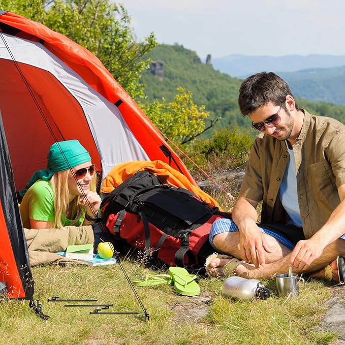 • Strong to Fix: made of metal, these camping tent stakes give you the security and stability needed for outdoor camping, even in places with 25 mph winds; Lightweight yet strong, they are easy to carry in your backpacks and designed to smoothly penetrate various grounds, giving you convenience and confidence
