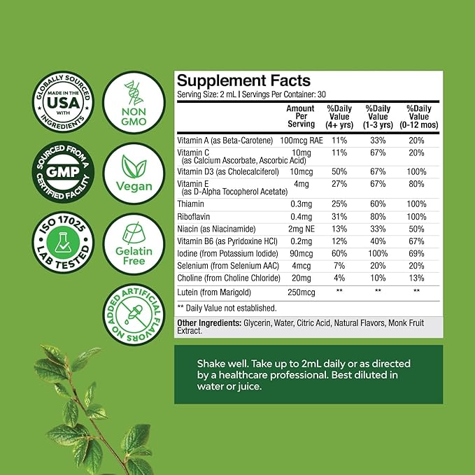 - Easy to use - Say hello to our fuss-free kids multivitamin liquid with included dropper to easily dispense directly or mix with your formula or juice of choice with 13 premium vitamins and nutrients