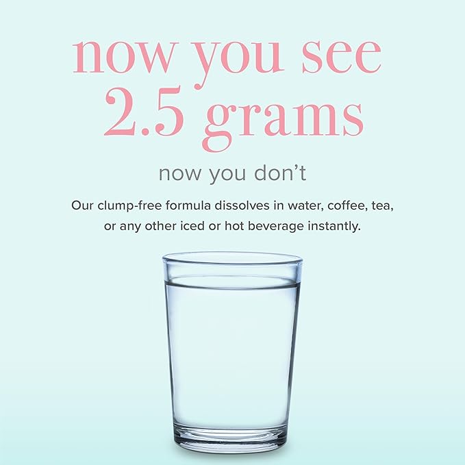 - EASY TO USE - Our collagen powder for women, accompanied by a 2.5 g nano scoop, easily mixes into various beverages and foods. Clump-free formula dissolves in water, coffee, tea, or any other iced or hot beverage instantly. Unflavored and absolutely no aftertaste!