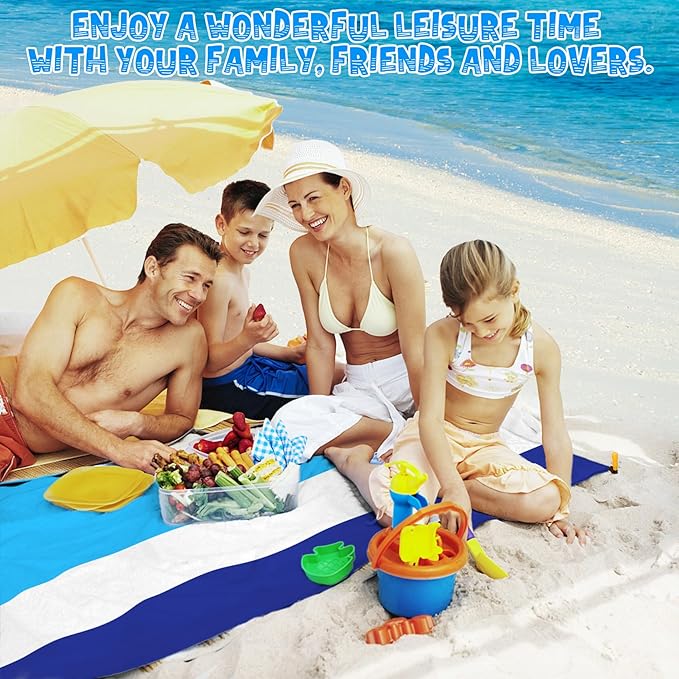 • 🌊BIG BEACH BLANKET:Durable and fast drying,can also be used as a canopy,sunshade,tent,toddler crawling mat,picnic mat,first aid mat,better professional fabric sewing without irritating the skin,providing you a good sense of use.