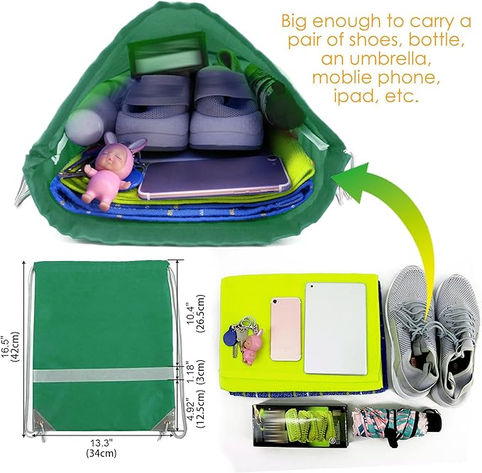 • 【LARGE CAPACITY & LIGHTWEIGHT】-- The drawstring backpack measures 16.5' x 13.4' and it is large enough to carry a pair of shoes, a bottle, an umbrella, lunch or clothes. These drawstring bags are made of high-density 210D polyester fabric. Lightweight and foldable, it is a good choice for home or travel. Provide you with a lot of convenience.