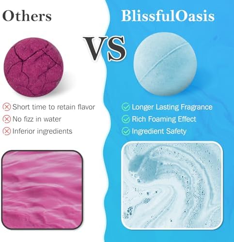 • [Safe Ingredients] Our bath bombs are made from safe ingredients with no undesirable additives, perfect for bubble bath. Plant oils, grape seed oil, shea & cocoa butter, etc. will not hurt the skin and will moisturize and smooth dry skin. Assessed by FDA and safe to use. Your sensitive skin will also feel soft, calm, and hydrated.