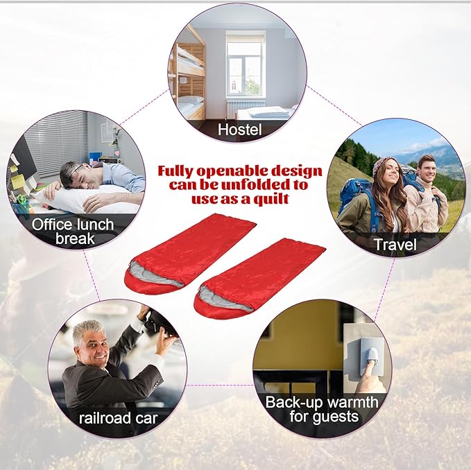 • Suitable for 4 Seasons and Warm or Cold Weather: our adult sleeping bags can keep warm in various outdoor activities in spring, summer, autumn, and winter; They are weather resistant design to keep you warm even in extreme conditions and prevent you from any dampness, you can get the comfortable sleep you need after a day of adventurous outdoor camping, backpacking, hiking, or travel