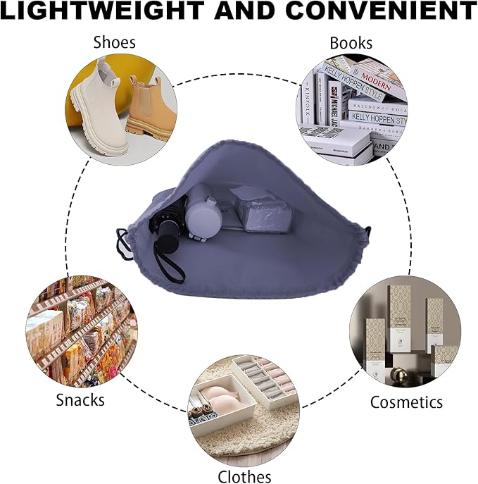- 16.5 'x13.3', which can completely hold basketball or football, shoes, water bottles, umbrellas, lunch boxes, clothes, wallets, keys, mobile phones and other daily necessities. The drawstring design enables you to quickly store items and easily take them in and out.
