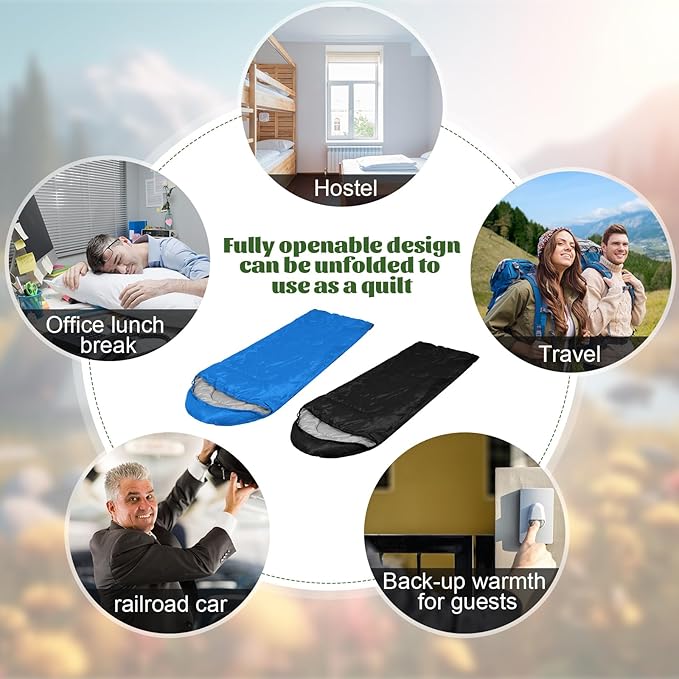 • Multiple Purpose: these compact sleeping bags are suitable for sleeping while camping, hiking, traveling, exploring, mountaineering, or you can unzip all zippers and use them as a comforter or blanket; You can also donate to the homeless and bring warmth to them