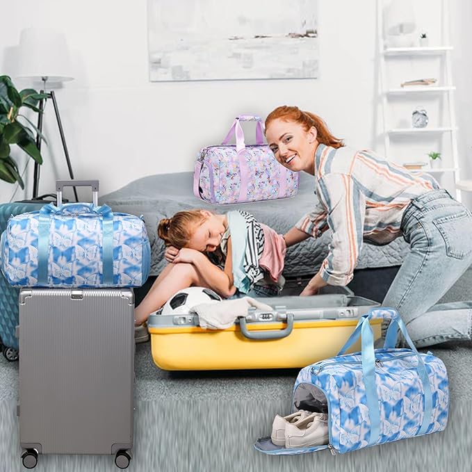 - Girls Travel Bag with Dry Wet Separated - Adorable girls ballet dance gymnastics bag Teen weekender bag also have a large wet compartment which protect your belongs well from rain or wet.Put dirty stuff inside it after exercise ,such as swimsuit, wet towels, toiletries or dirty clothes.