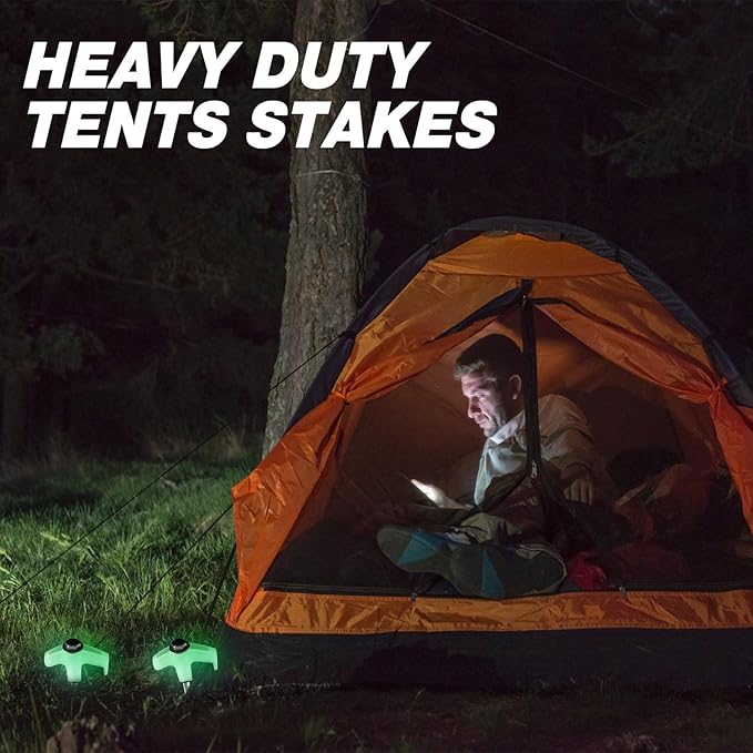 - Sufficient Quantity: you will receive 40 pieces of metal tent stakes and 1 piece of 0.51 inch diameter hex head driver, enough quantity to meet your applying needs and replacement needs; The stakes are approx. 8 inch/ 20.5 cm long, the thread is approx. 5 inch/ 12.5 cm long and approx. 0.31 inch/ 0.8 cm in diameter; The light up top of the tent stake keeps you from tripping over it, also can reduce the loss of tent stakes