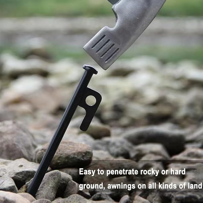 - Easy to Use:The tent spikes are suitable for all kinds of grounds,The camping stakes are very sturdy, keeping your tent secure all day and night,Our no-nonsense installation process only requires a hammer and just one person to set it up,which greatly improve your efficiency, saving time and effort