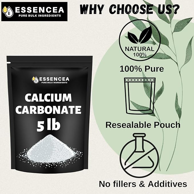 - ✅ Calcium Carbonate by Essencea Pure Bulk Ingredients comes in a resealable pouch to maintain its freshness throughout.