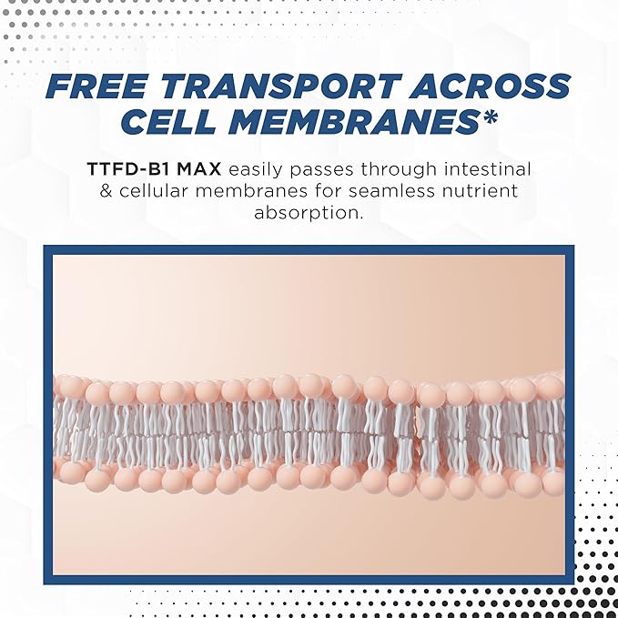 - HIGH BIOAVAILABILITY: MAXLIFE NATURALS TTFD thiamine B1 supplement (Thiamine Tetrahydrofurfuryl Disulfide) offers superior absorption compared to traditional thiamine supplements. Its unique molecular structure allows it to cross cell membranes easily, ensuring your body gets the maximum benefit with less dosage. TTFD thiamine, also known as Thiamine TTFD, supports better energy and cognitive function while enhancing thiamine utilization more efficiently than regular B1 Vitamin.