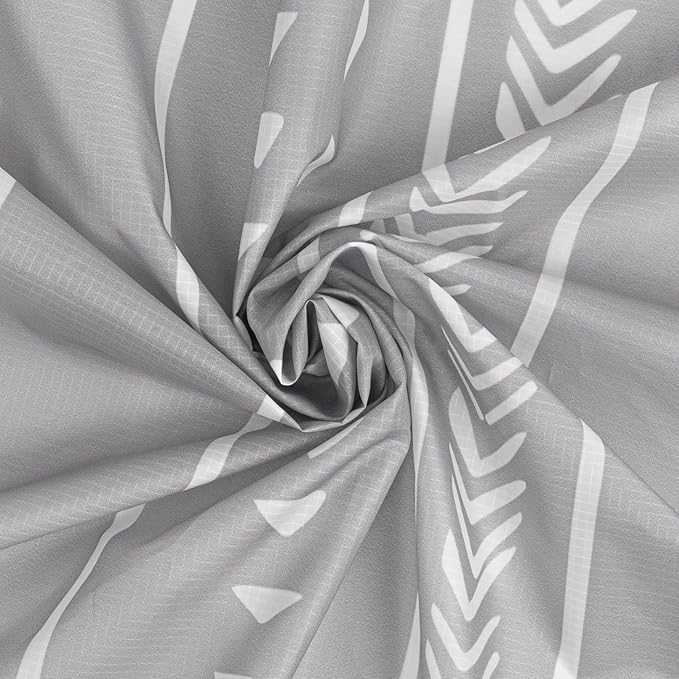 - Wind Resistant : Our gray geometric style beach blanket comes with 4 anchor stakes and 4 sand pockets. On windy days, if you don't have a lot of stuff on your beach mat, just fill the built-in corner pockets with sand to weigh it down or use the four included stakes to keep it in place.