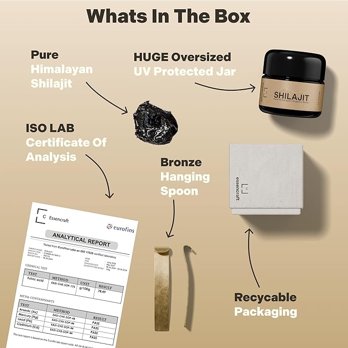 • Gold Standard Certified Purity – Wild harvested at over 18,000 feet, Essencraft Pure Himalayan Shilajit Resin captures the essence of the Ladakh region's pristine environment, ensuring unmatched potency and quality.