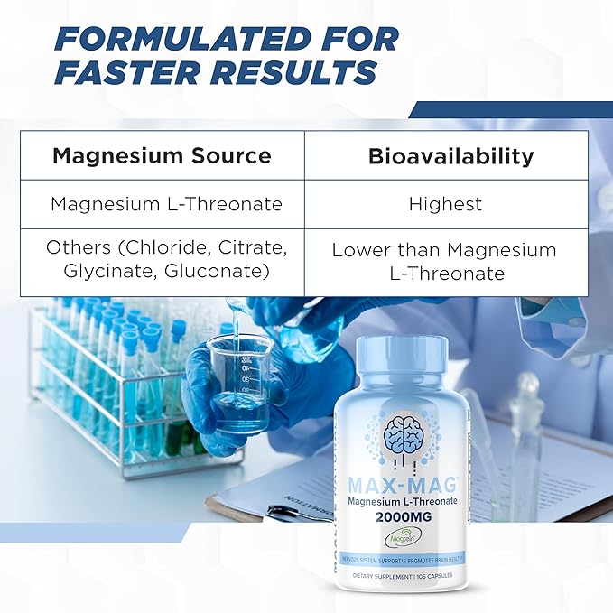 - Enhanced Absorption Formula: Maximize the benefits with the Max-Mag L Threonate Magnesium Blend Supplement, designed for better absorption and effectiveness in your daily wellness routine.