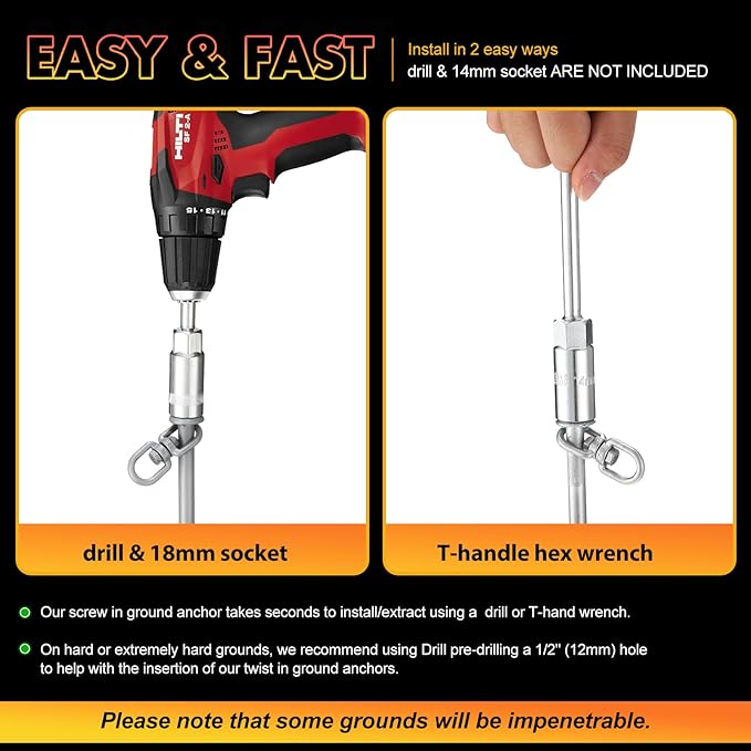 • Easy to Install: the earth anchors are easy and convenient for you to install, with the help of the T handle hex wrench, the pointed ends can easily penetrate into the soil, greatly improving the efficiency, saving your time and energy
