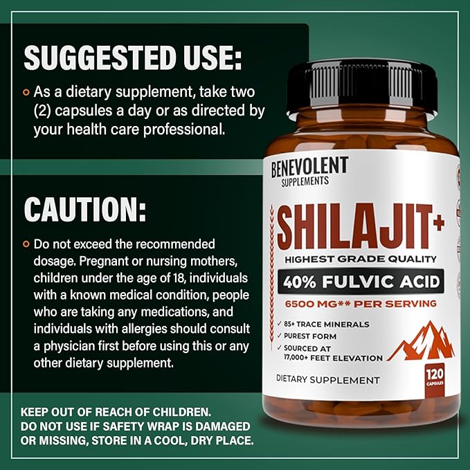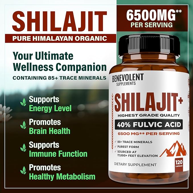 - Experience the Ultimate Powerhouse: Our Shilajit supplement delivers a concentrated 6,500 mg of pure strength in every serving, fortified with an incredible 40% fulvic acid. Unveil a treasure trove of essential minerals including iron, iodine, copper, zinc, magnesium, and potassium, meticulously crafted to supercharge your body.