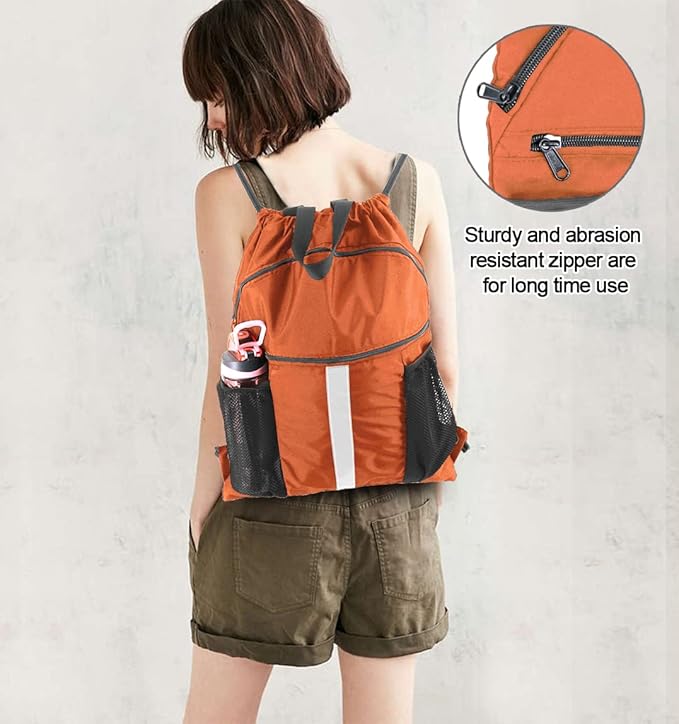 - Convenient Multi Pockets: The big shoe compartment in front of draw string sport bag can hold two pairs of shoes; the smaller zipper front pocket is perfect for keeping an ipad, towel, and other items, besides, two sides mesh bags allow you to place a water bottle, umbrella easily. Inside of cinch bag, the zipper pocket can hold small valuables such as wallet, cellphone, keys and so on. Multiple Pockets help you to keep things to be placed by category, easy to be found.