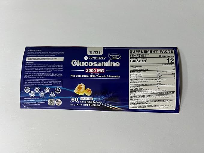 - 【PLUS VITAMIN D3 & ZINC】NEVISS glucosamine gummies contain the recommended daily dose of vitamin D3 (1000 IU), and Zinc for daily health. Gummies contains a delightful pineapple flavor, suitable for men and women.