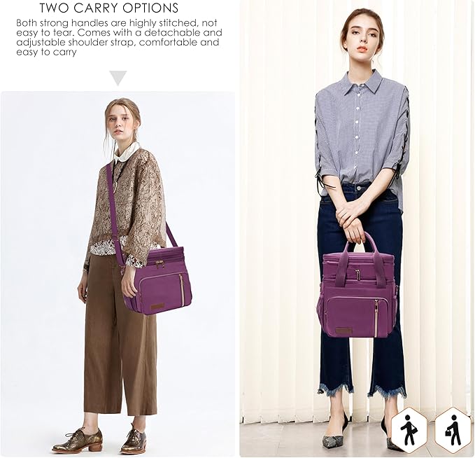 MIYCOO Lunch Bag for Women Men Double Deck Lunch Box - Leakproof Insulated Soft Large Adult Lunch Cooler Bag for Work (Purple,15L)