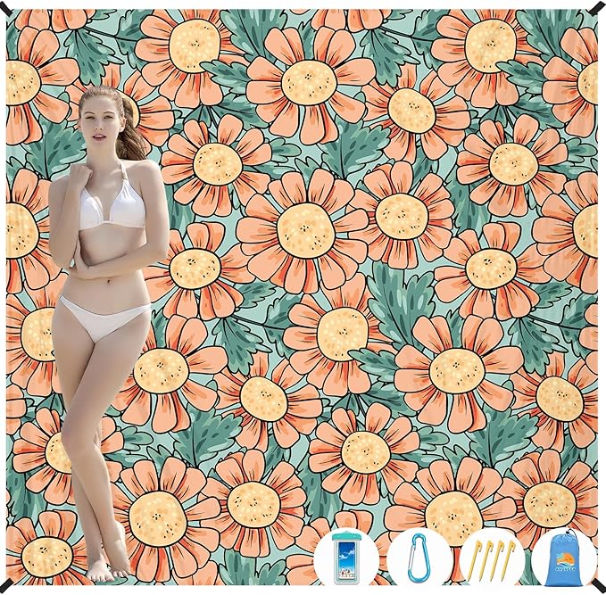 • 🛒PACKABLE SAND RESISTANT BEACH BLANKET MAT:The package includes 1 beach blanket,4 ground stakes for windproof,1 carabine for carry.You can enjoy a wonderful outdoor time with your family.If you have any questions,please don't hesitate to contact us.