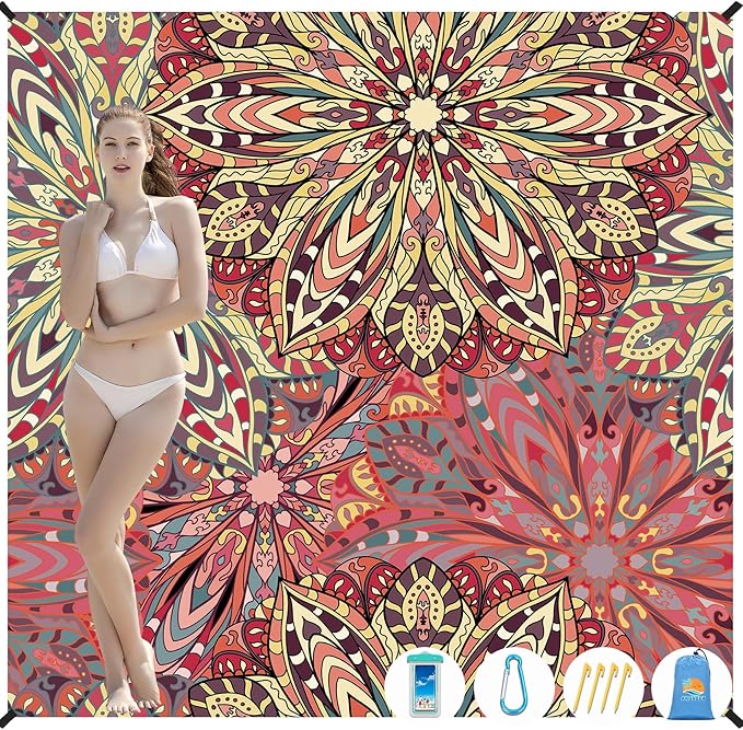 - 🛒PACKABLE SAND RESISTANT BEACH BLANKET MAT:The package includes 1 beach blanket,4 ground stakes for windproof,1 carabine for carry.You can enjoy a wonderful outdoor time with your family.If you have any questions,please don't hesitate to contact us.