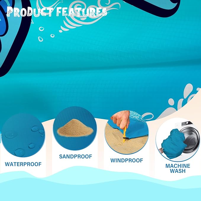 • 🏕BEACH MAT BLANKET WATERPROOF:Effectively waterproof sandproof and tear resistant.You only need to gently shake it while the sand will fall off.Keep the blanket clean at all times,can be washed by hand or machine