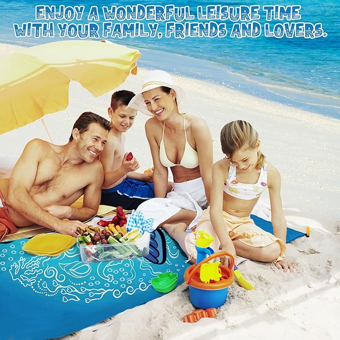 • 🌊BIG BEACH BLANKET:Durable and fast drying,can also be used as a canopy,sunshade,tent,toddler crawling mat,picnic mat,first aid mat,better professional fabric sewing without irritating the skin,providing you a good sense of use.