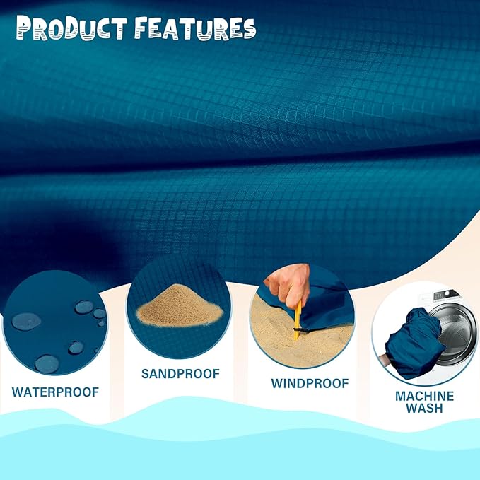 • 🌊BIG BEACH BLANKET:Durable and fast drying,can also be used as a canopy,sunshade,tent,toddler crawling mat,picnic mat,first aid mat,better professional fabric sewing without irritating the skin,providing you a good sense of use.