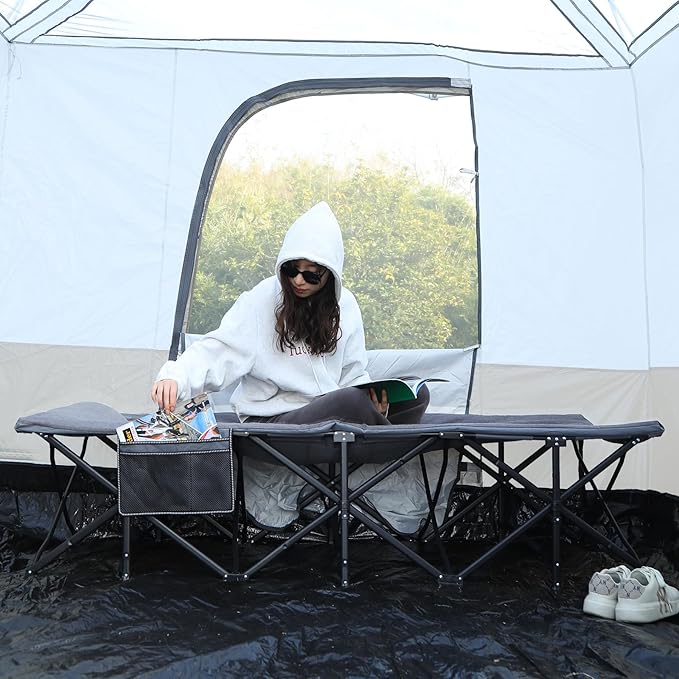 - Versatile Usage: The camping cot weighs only 20lbs. Lightweight to take outdoor. It can not only be used for outdoor, but also can be used as a bed in the house when you need to have a rest or take a nap. Suitable in various occasions like outdoor grass, forest, indoor bedroom, office, or living room.