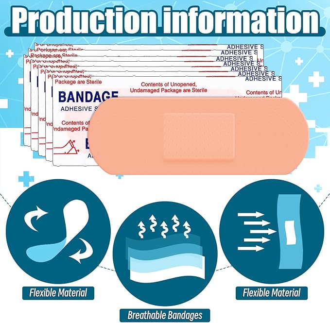- Material and Size: feel relieved with knowing that these breathable adhesive bandages are made of quality PE and do not contain any pharmaceutical ingredients, providing not only durability but also safety for skin contact; Plus, with a size of 1'' x 3'', these bandages are appropriately sized to cover most typical cuts and scrapes while not being too unwieldy or uncomfortable to wear