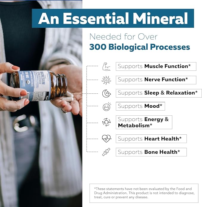 - SUPPORTS TOTAL BODY HEALTH | Magnesium is arguably the most important mineral for health. It is used in over 1,000 biological processes. It supports energy production, restful sleep, metabolism, muscle function, heart health, cell & DNA function, and it supports mood/peace of mind*.