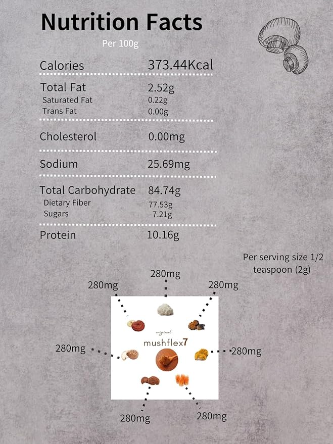 - Versatile - Our mushroom powder is good for adding a rich, taste of umami your favorite dishes. Whether you sprinkle it into your favorite yogurt, smoothies, mix it into muesli, oatmeal, soups, you can enjoy the benefits of our mushflex7 blend
