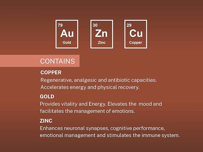 - Gold for Mood and Vitality: Gold infusion aims to promote mood elevation and emotional management while potentially increasing vitality, providing a holistic approach to a more balanced and harmonious life.