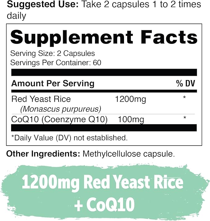 - Red Yeast Rice Extract Plus CoQ10: Acts as a strong antioxidant.