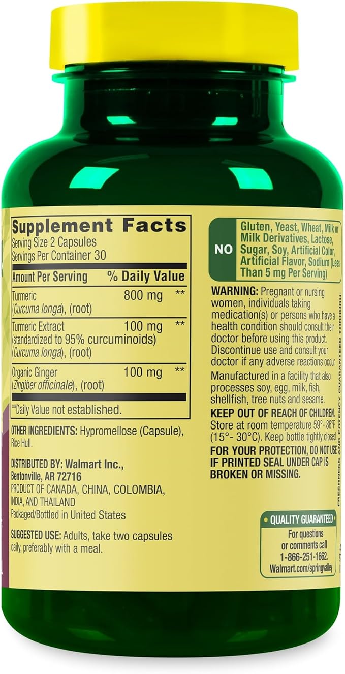 Spring Valley Turmeric Curcumin 1000 mg- 60 Capsules (Pack of 1), Boxed by Fusion Shop Store