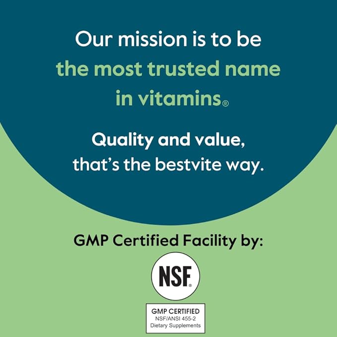 - NSF GMP CERTIFIED FACILITY: Bestvite’s facility is NSF/ANSI 455-2 Dietary Supplements Good Manufacturing Practice (GMP) certified. Earning GMP certification from NSF verifies that a manufacturing facility has the proper methods, equipment, facilities, and controls in place to produce dietary supplement products.