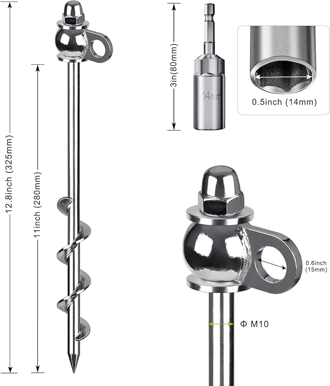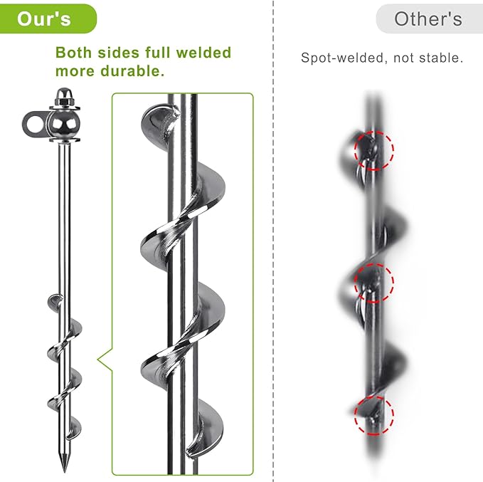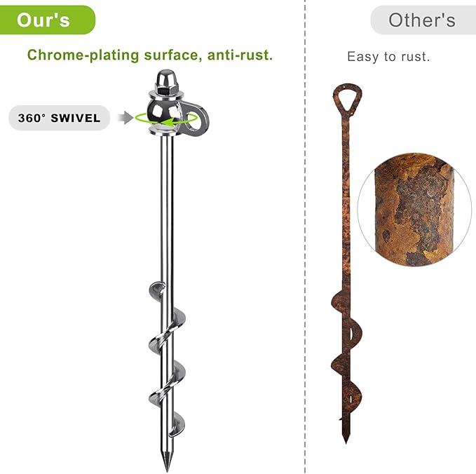 • 【Easy to Install and Remove】You can easily screw these spiral anchor into the ground with a drill and screw them out again when you don’t need them. You can install them in a few minutes, saving your time and effort.