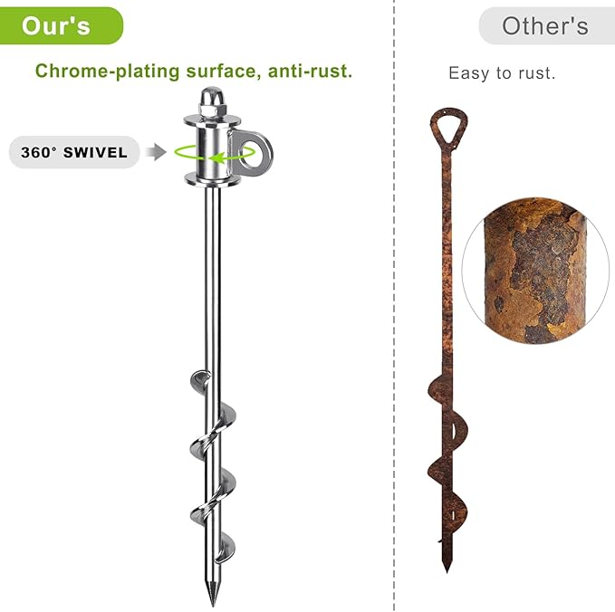 - 【Easy to Install and Remove】You can easily screw these spiral anchor into the ground with a drill and screw them out again when you don’t need them. You can install them in a few minutes, saving your time and effort.