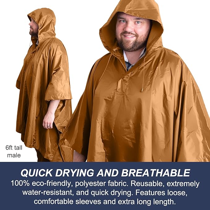 - BE PREPARED TO BRAVE THE WEATHER: Don't let the weather get in the way of your plans of a hiking trip, camping weekend, or outdoor music festival. Our hooded rain poncho's got you covered, with 100% waterproof PVC material you can rest assured that you will remain dry and comfortable during your adventure!