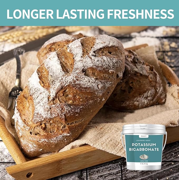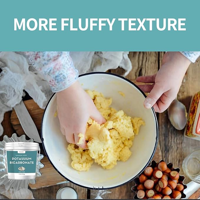 • IMPROVED TEXTURE: Potassium bicarbonate powder food grade is a highly effective leavening agent that aids in the leavening of baked goods and contributing to the rising and light texture of baked goods.