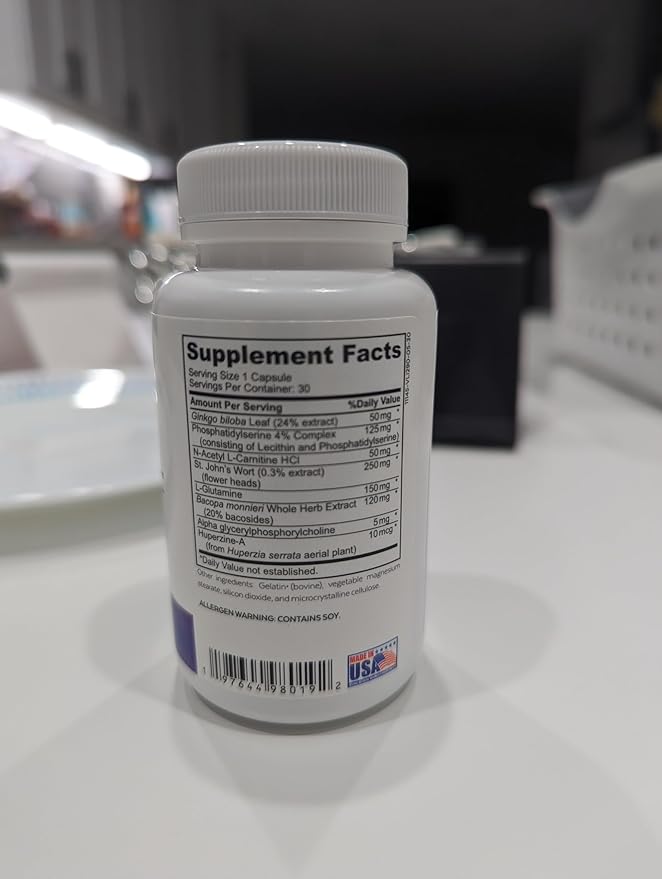 • Premium Ingredients: Featuring Ginkgo Biloba, Bacopa Monnieri, St. John's Wort, and more, this complex combines nature's best for optimal brain support. Formulated to protect brain cells and promote mental clarity, our supplement aids in maintaining optimal cognitive function and brain health.