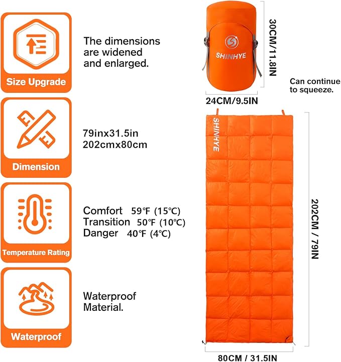 ShinHye Ultralight Sleeping Bag for Adults - 500g Premium Duck Down Waterproof & Compressible, 3 Season Backpacking Camping 40-59℉, Compact Lightweight Sleeping Bag with Compression Sack