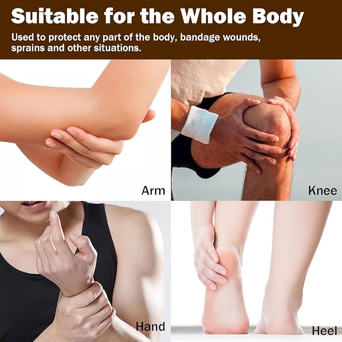 • The bandages are made from high quality porous fabric with bacon strips that are totally safe for your skin as they allow good ventilation. You don't need to worry about they loosen and fall of by sweat or water.They are very light weighted, and safe for your pets as well!(horses, ponies, dogs, cats, etc)