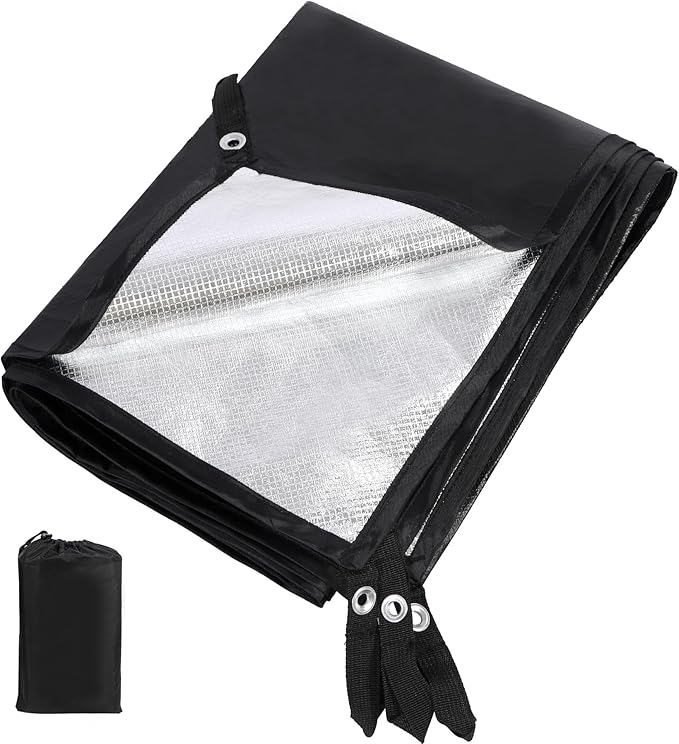 - Multifunctional Survival Blanket: The reflective liner can help to preserve warmth in bad weather. It can reflect sunlight as a help signal when danger happens. It is not only a tent tarp, ground cover or shelter, but also a warm emergency blanket.