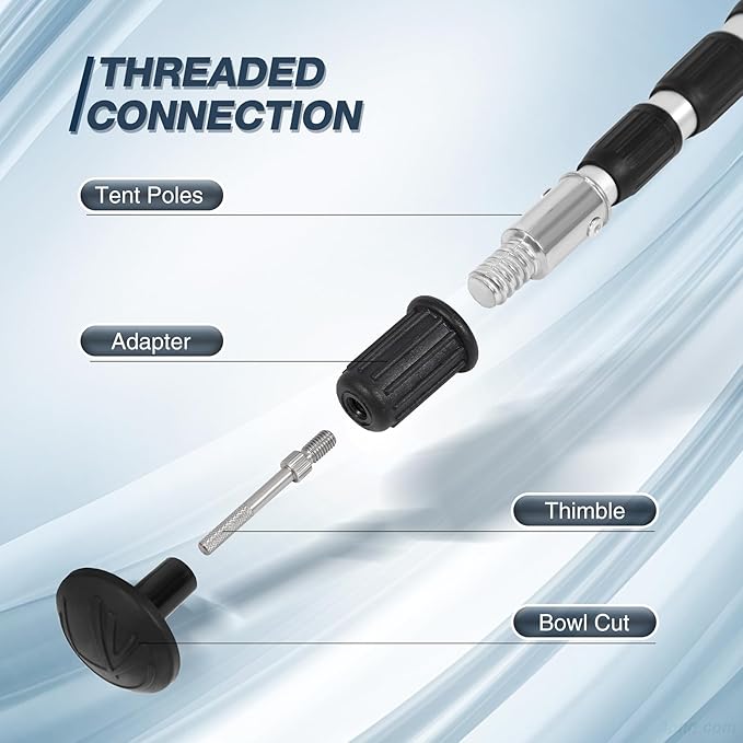- Stable & Tear-resistant: The rubber tip cover reduces slipping and eliminating punctures of tarps when used directly to support tent, tarp or other shelters. Bottom rubber cap features anti-slip texture, making the pole more stable and less prone to tilting. With 2 holes on each pole which can be tied with ropes has strong wind-resistance & stable standing.