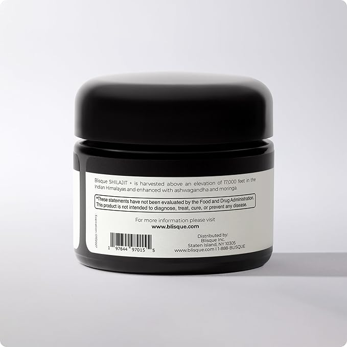 - AUTHENTIC AND NATURAL: Blisque SHILAJIT + uses the finest authentic wild-harvested shilajit resin on the planet. Sourced at over 17,000 feet of elevation in the Indian Himalayas and manufactured in the USA in a state-of-the-art certified cGMP NSF facility. Our pure and potent shilajit resin is China-free, filler-free, additive-free, and free of hidden ingredients. Why? Because your well-being is our priority.
