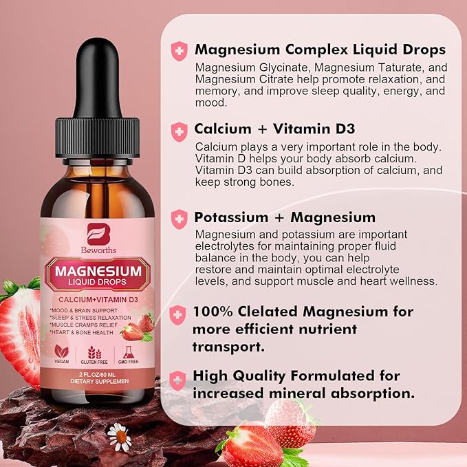 - 【HIGHEST QUALITY MAGNESIUM GLYCINATE SUPPLEMENT】- Our magnesium complex liquid drops are a premium quality magnesium supplement that provides you with the essential nutrients your body needs. Magnesium glycinate complex liquid is made with magnesium glycinate, Magnesium Citrate, Calcium, Potassium, L-theanine, Vitamin, and Zinc. Magnesium Taurate form of magnesium that is easy for your body to absorb. Our magnesium glycinate complex is vegan, non-GMO, and contains no soy, dairy, or gluten.