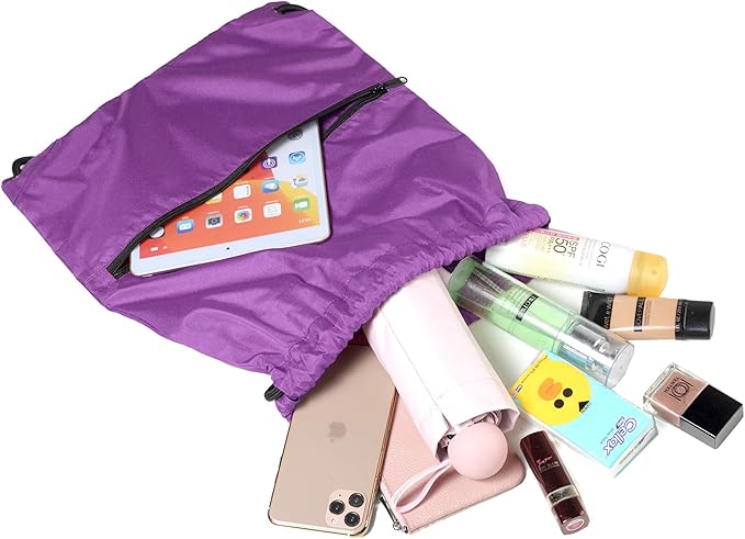 - 【2 Zippered Pockets & Large Capacity】:The size of our string bag is 18.5 'x 13.8'. with 3 functional compartments; 1 main large compartment with drawstring closure fits with towels, hat ,and it is big enough to hold a basketball. The inner zippered pouch of our sports bag can store important items such as cell phone, keys, and wallet , avoidting items from falling. Another front zippered pocket is more suitable for commonly used items such as sunscreen, glasses, lipstick and more.