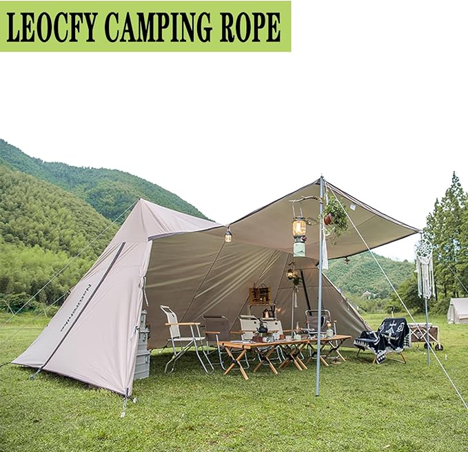 - STRENGTHEN REFLECTIVE:LEOCFY Lightweight tent rope cord has 1 reflective woven wire which giving greater visibility even there is very little light;